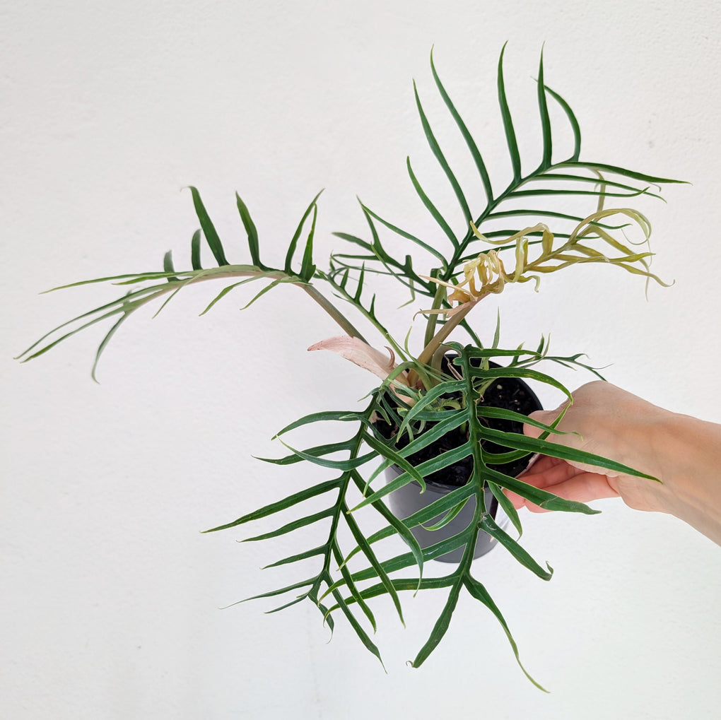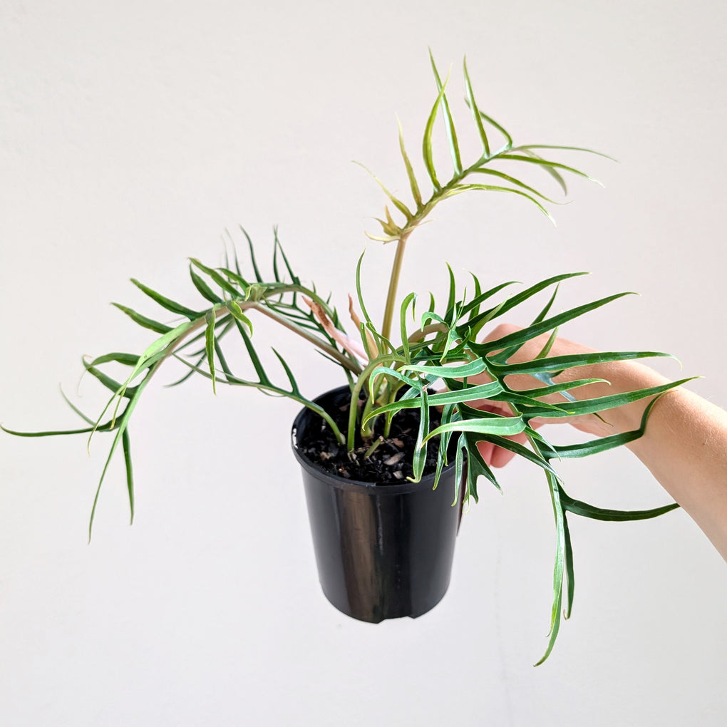 A rare species within the ever-popular Philodendron genus, P. tortum has a creeping habit and features striking slender, divided, spiralling leaves, giving this unique indoor plant a fern-like appearance. They love bright indirect light and letting the soil dry between watering.