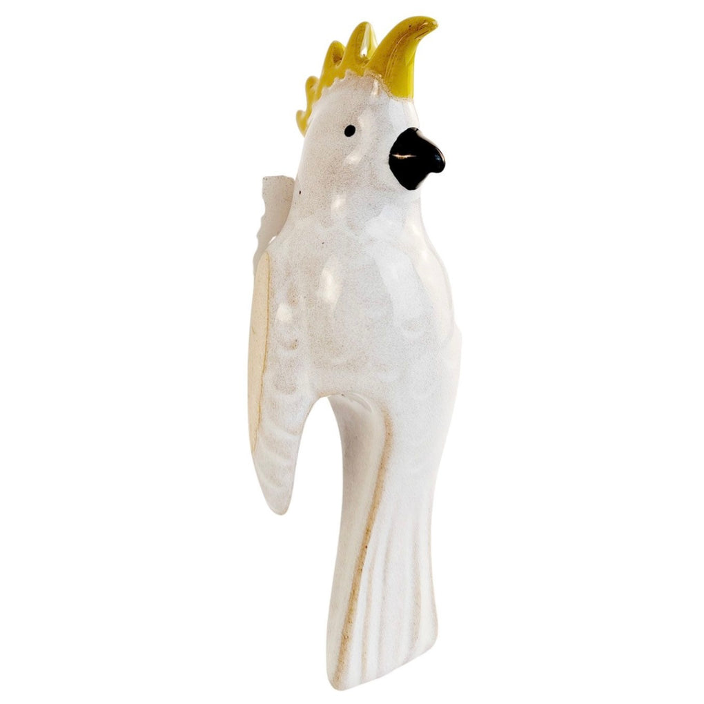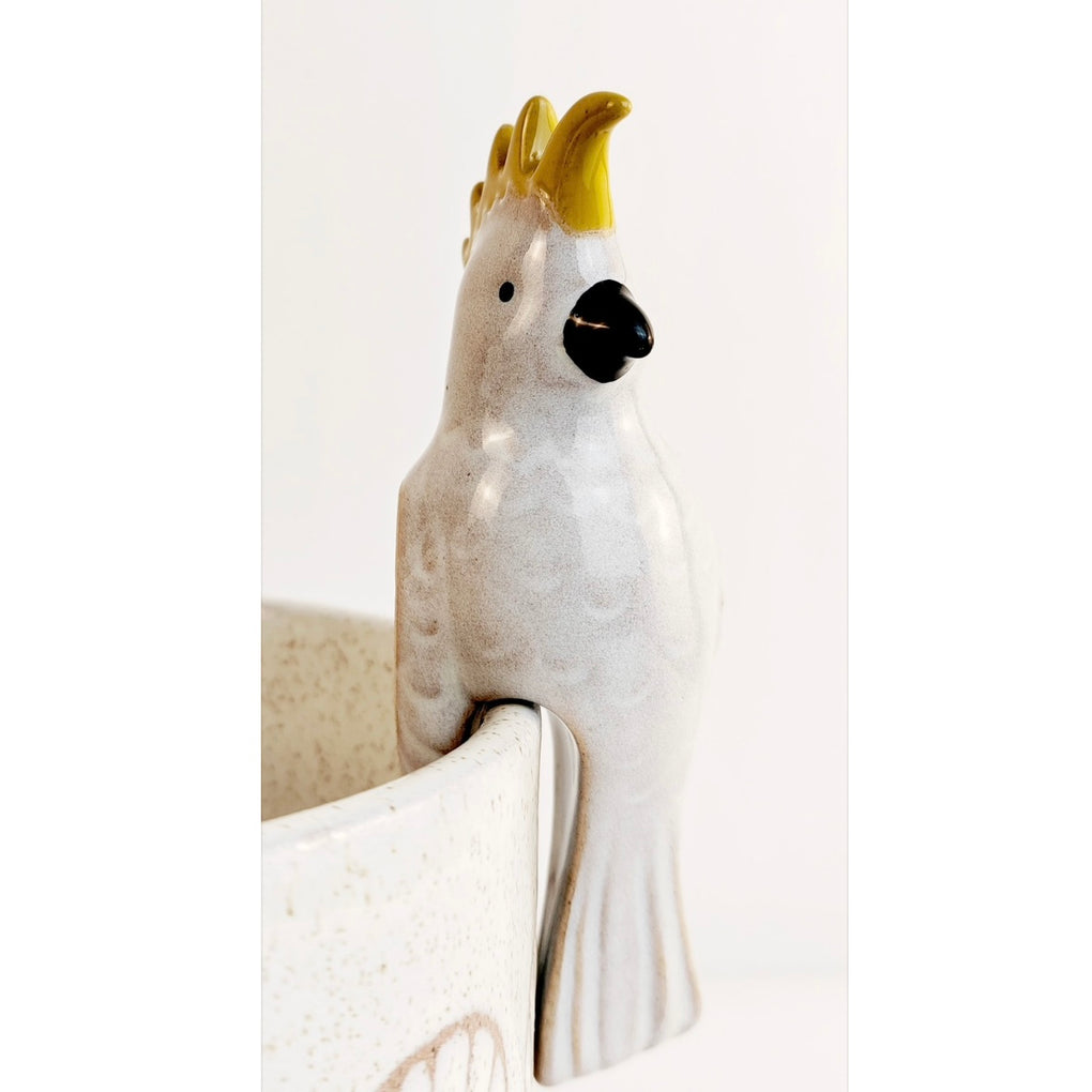 A sweet little accessory for your pots, bringing charm and character to your indoor plant collection. Made from ceramic, and glazed in white with a bright yellow crest. The cockatoo pot hanger is a fun addition to any pot and a great gift idea or stocking filler!