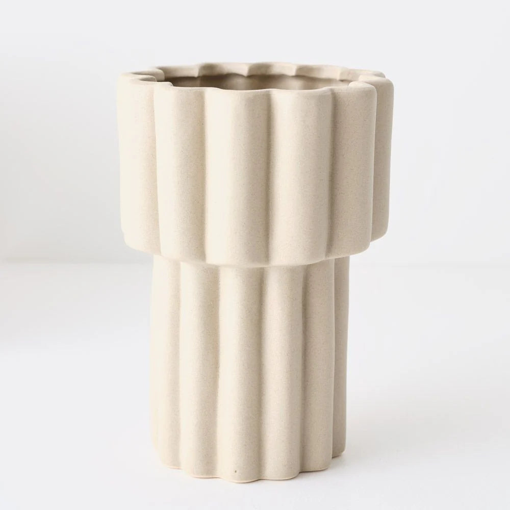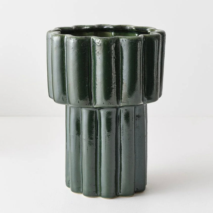 With its unique wavy rim and smooth glazed finish, the Gustel Pot makes a great architectural statement piece and is an ideal vessel for any indoor house plant.