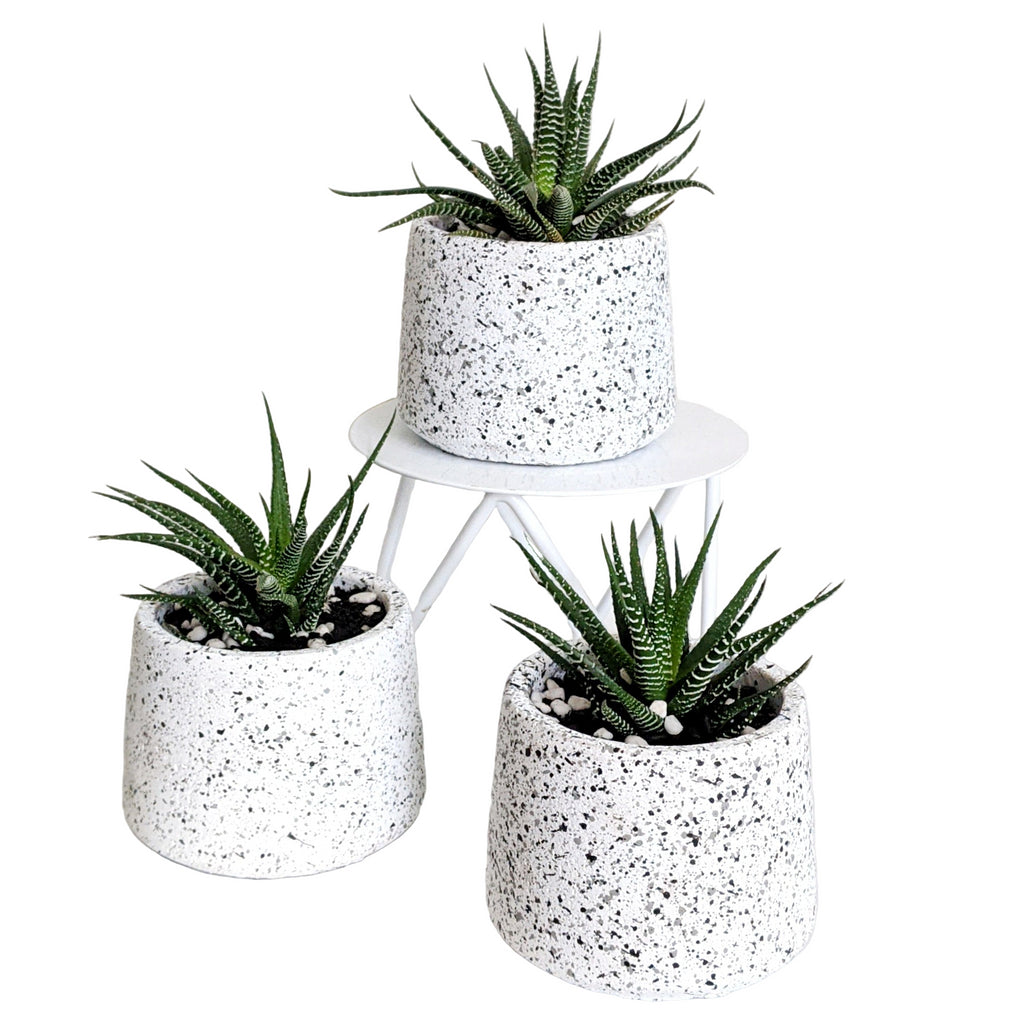 The Haworthia fasciata is an easy care, hardy succulent. Drought tolerant and low maintenance, this plant will remain small and compact. They enjoy bright indirect light and allow to dry out between watering.