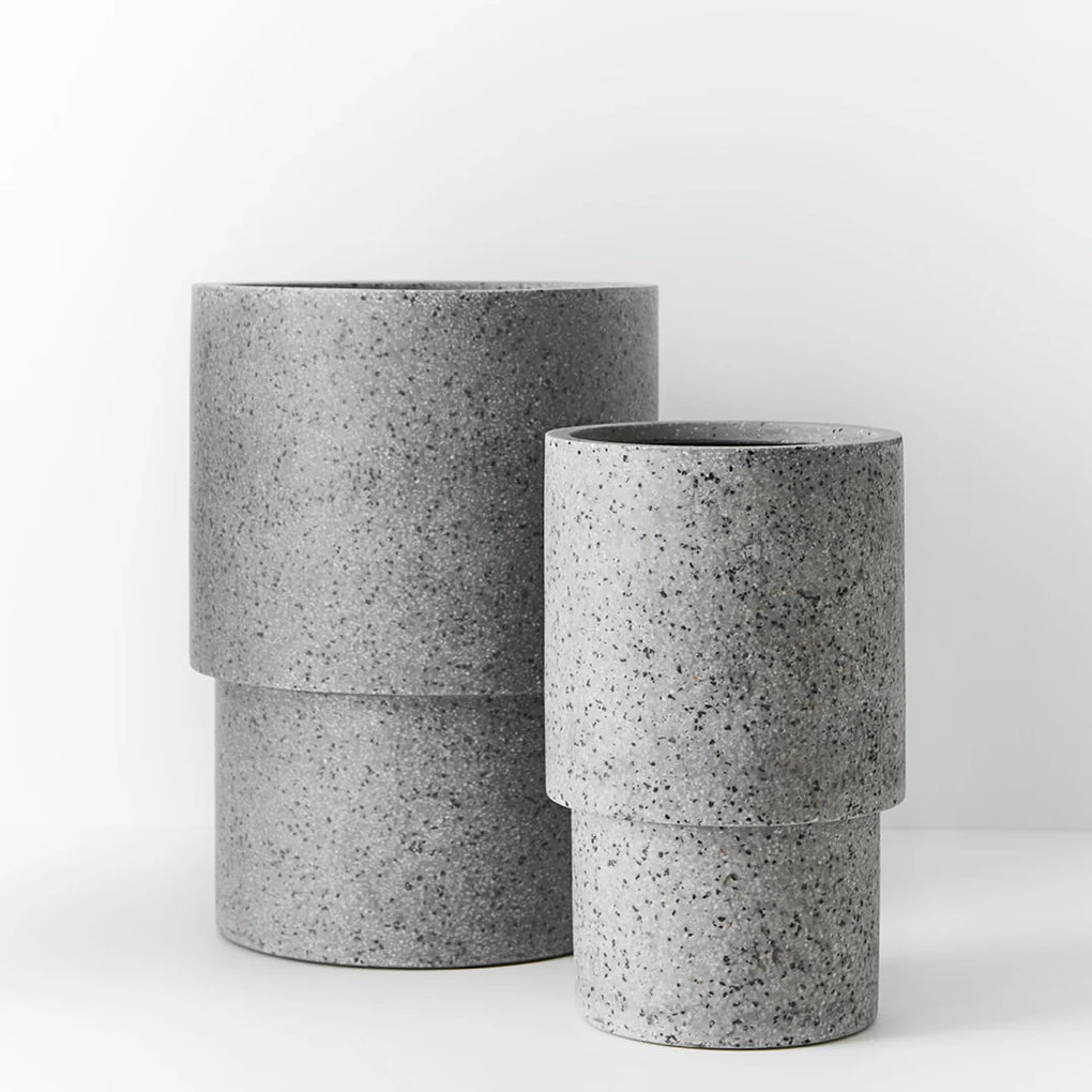 The perfect modern terrazzo look planter, but without the weight of concrete. This lightweight pot features a podium base to add some height to your favourite houseplants. Made from a lightweight poly terrazzo to make styling your indoor plants a breeze. Includes a drainage hole, making them suitable for indoor or outdoor use, or simply put a drip tray in the inside and slip in your plant in the nursery pot.