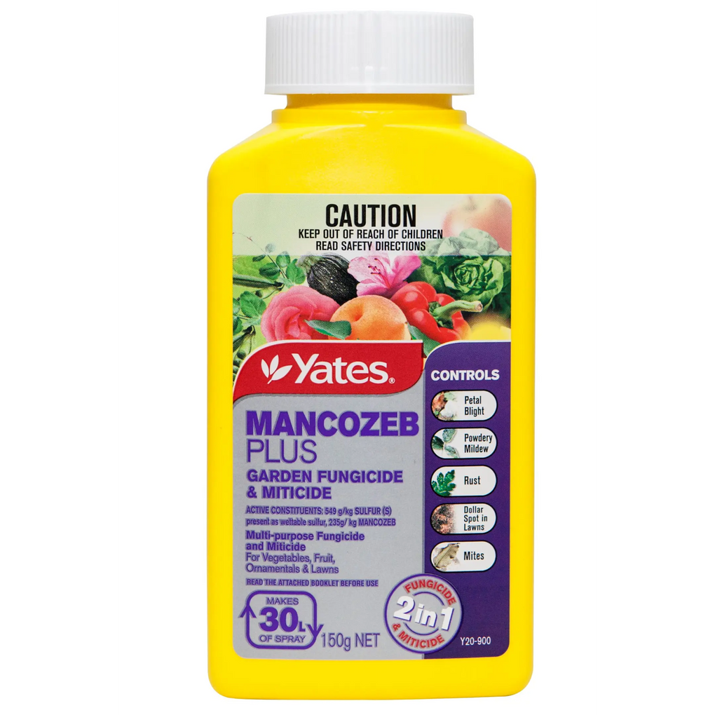 This combination of mancozeb and sulfur provides dual-action protection against fungal diseases including black spot, powdery mildew, leaf rust, and Botrytis. The sulfur component also provides further protection against a range of mite species.