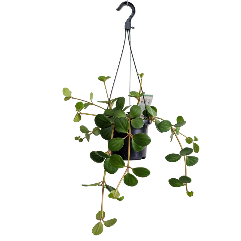 An unusual trailing Peperomia that makes a perfect houseplant for hanging pots. Prefers a warm environment and bright filtered light indoors. Relatively slow growing when compared to other Peperomias. To keep this plant happy and healthy, water when the top two inches of soil feel dry and take care to avoid overwatering.