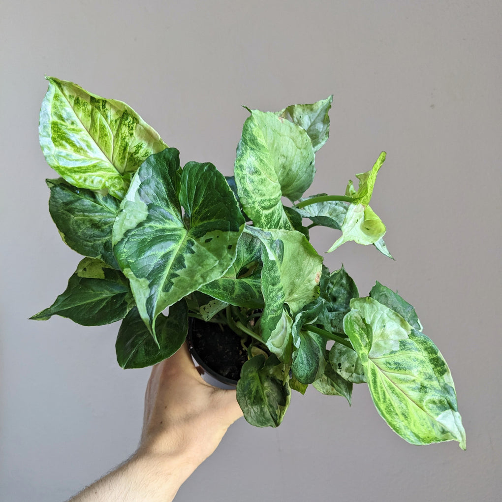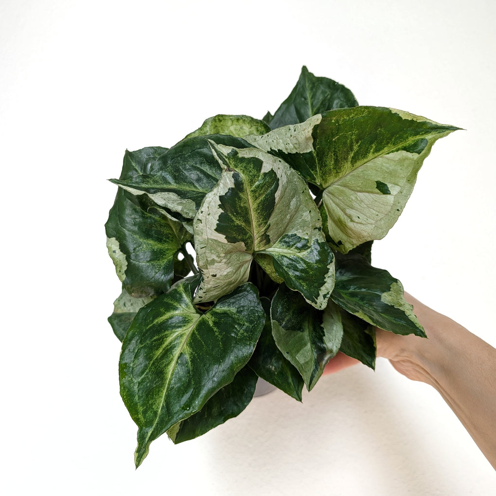 An interesting variegated member of the Syngonium family, ‘Brenda’ has mid green leaves splashed with creamy white variegations. Striking in looks, and easy to care for, making it a special indoor plant.