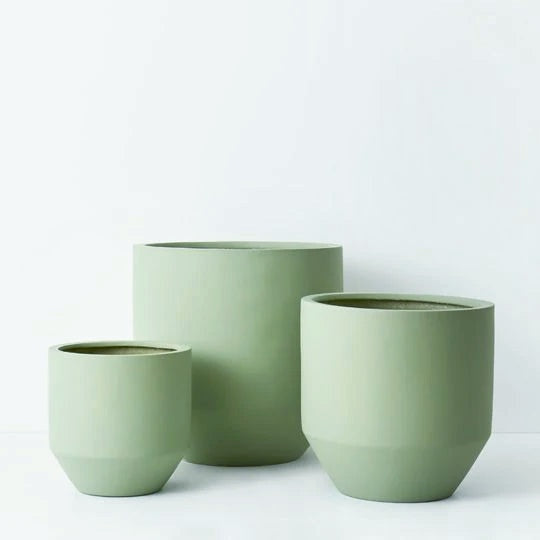 The Nomilo pots are the perfect modern vessel to style your plants in any space. The sage green colour way pairs easily with an assortment of plant varieties. Place the set together to achieve a cohesive display of greenery with varying heights or easily pair them with existing pots and colours.