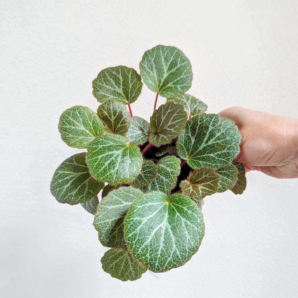 The Saxifraga stolonifera is a flowering perennial plant native to China, also known as the ‘Strawberry begonia’ and ‘mother of thousands’ plant. Like the Strawberry plant, Saxifraga produce runners from the main plant, which multiply the mother plant, and if in ground take root. They boast a uniquely patterned dark leaf with light veining. Saxifraga are stunning as a hanging plant or on the edge of a shelf to show off their trailing foliage.